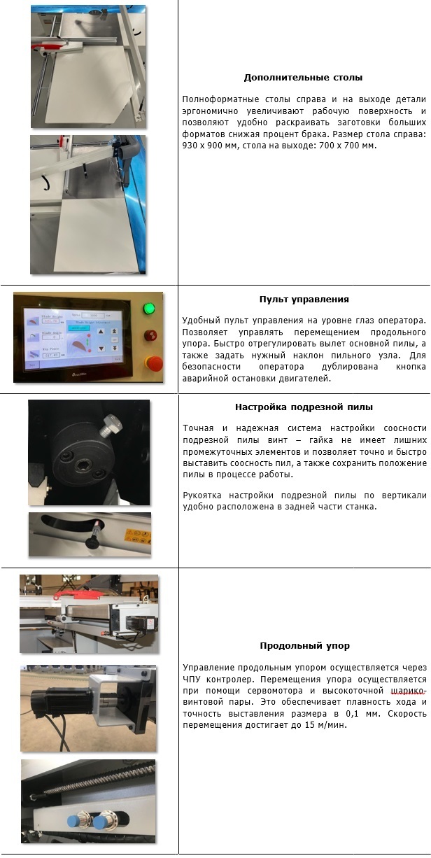 Максимальный вылет основной пилы: [мм] 65 - диск 300 мм, 115 - диск 400 мм без снятия подрезного диска