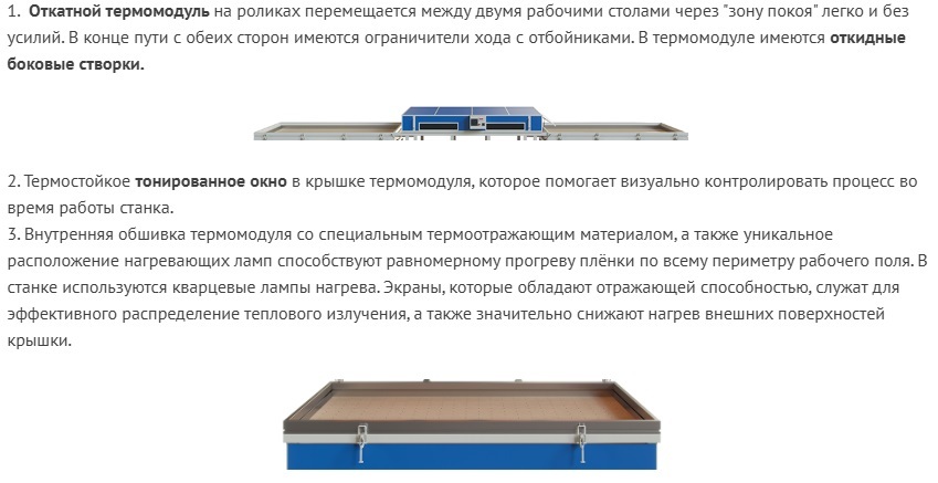 Назначение: Вакуумный пресс с откидным термомодулем 2500 - 2– это удобное и эффективное оборудование, специально созданное для облицовки мебельных фасадов (МДФ, ДСП и т.п.) ПВХ плёнками, шпоном, пластиком, текстурированной бумагой. За счёт вакуума и нагрева лампами КГТ облицовочный материал полностью покрывает любой мебельный фасад даже с глубокой фрезеровкой.